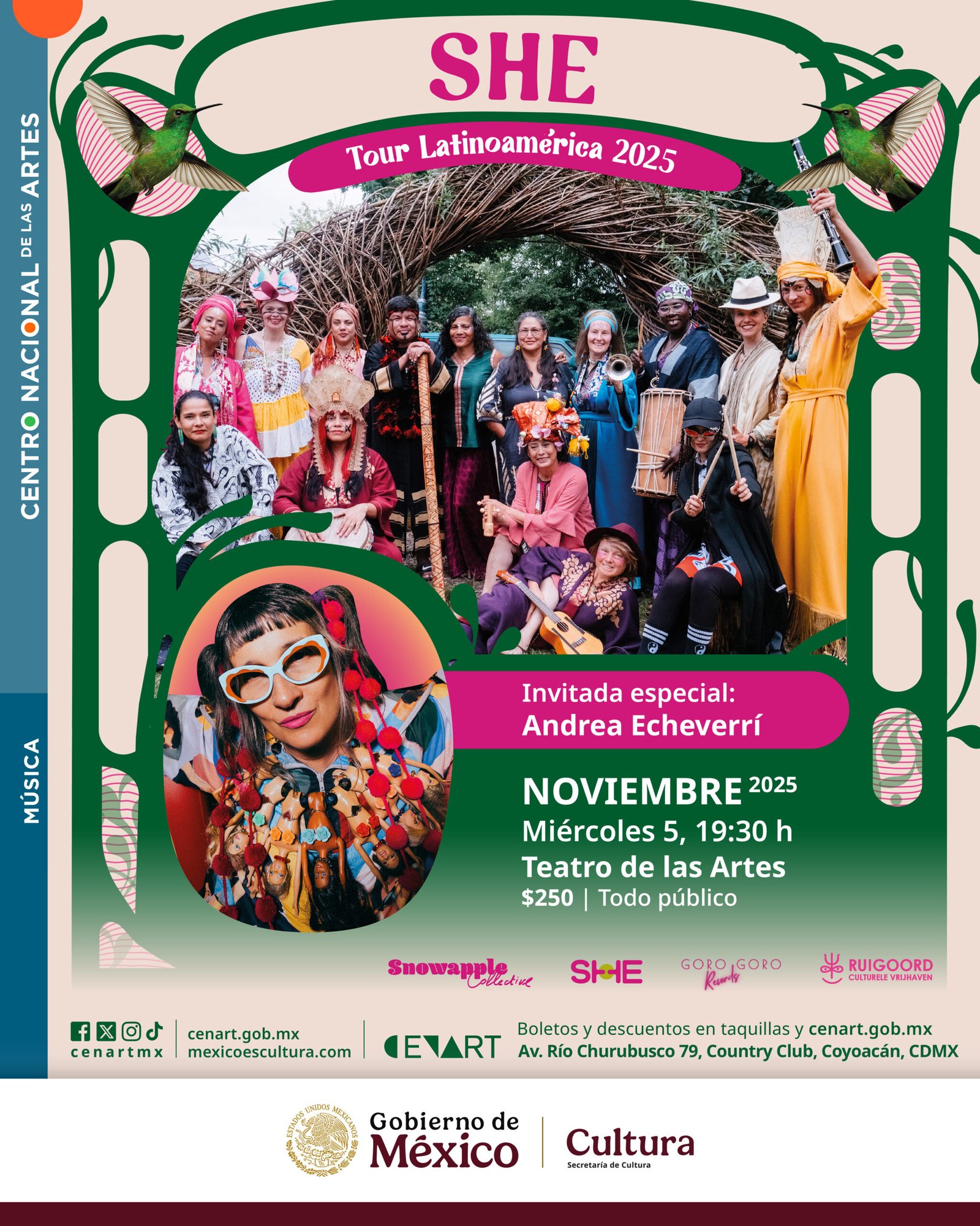 Este 5 de noviembre de 2025, el Teatro de las Artes del CENART será testigo de una experiencia única: SHE – Tour Latinoamérica 2025, un espectáculo que combina arte, música y conciencia ambiental para recordarnos la profunda conexión entre la naturaleza y la humanidad.